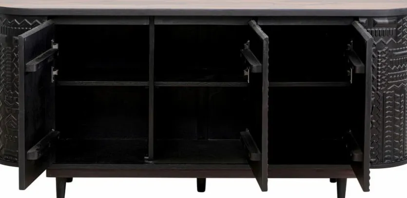 Das Sideboard Berber 87260 aus dem Hause KARE DESIGN lenkt mit jeder Menge Charme und Charakter die Blicke auf sich. Dekorative Schnitzereien im Bereich der Fronten verleihen dieser geräumigen Kommode ihren aufregend schönen Look. Kombinieren Sie das Sideboard Berber 87260 am besten mit Möbeln im Ethno- oder Kolonialstil!