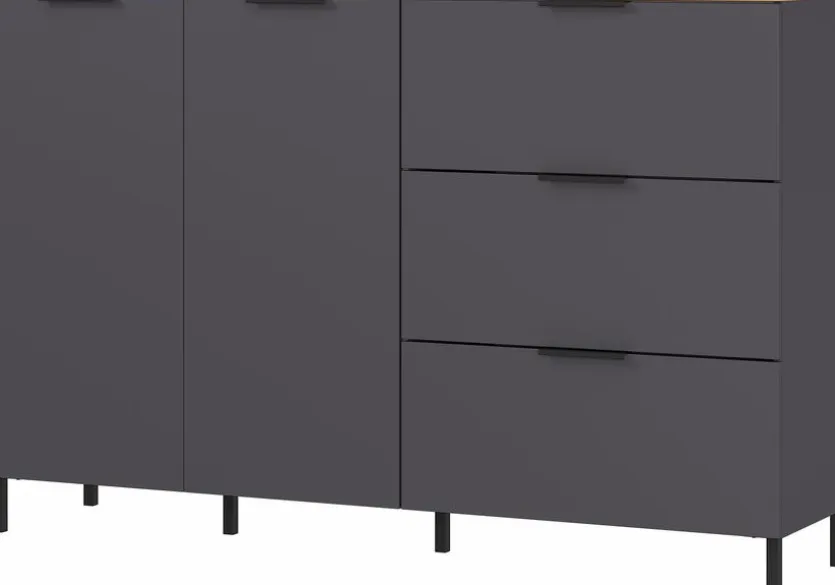 Tragen Sie mit dem Sideboard California von Germania zu einer zeitgemäßen Einrichtung bei. Die Kommode überzeugt optisch auf ganzer Linie und passt hervorragend zu Wohnstilen im City-Look. Außerdem erweist sich das Germania Sideboard California dank je zwei Schubkästen und Türen als sehr geräumig.
