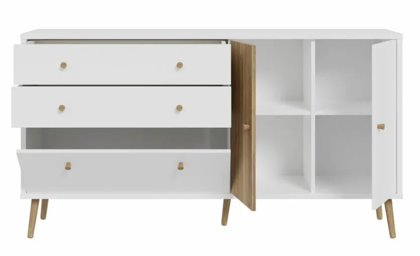 Farbe: Weiß / EicheMaterial: DekorGröße: Breite: 159,20 cm, Höhe: 86,50 cm, Tiefe: 41,50 cm
