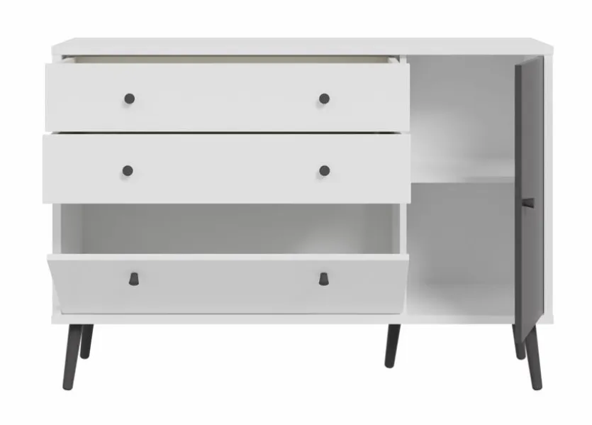 - Mit 1 Türe, 2 Schubkästen und 1 Klappe