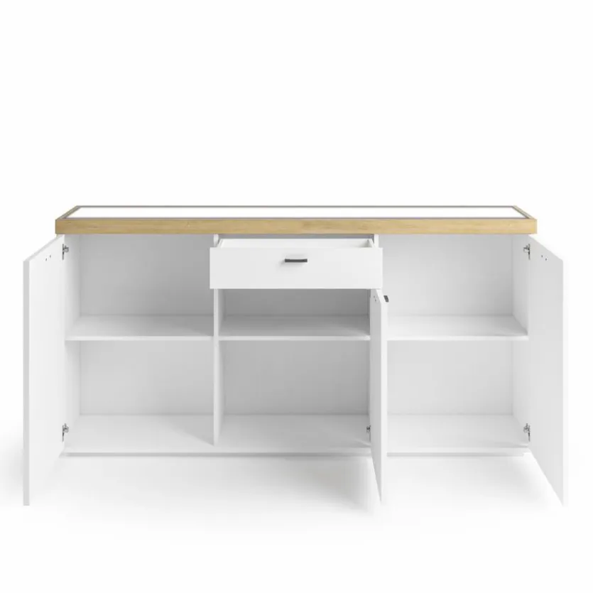 Durch sein klassisches Design und die zeitlose Form lässt sich das Sideboard Lancaster von set one by Musterring vielseitig mit unterschiedlichen Einrichtungsstilen kombinieren. Die farblich abgesetzte Platte verleiht der Kommode einen ganz individuellen, rustikalen Charme. Im Inneren bietet das Sideboard Lancaster viel Platz in abgetrennten Bereichen.