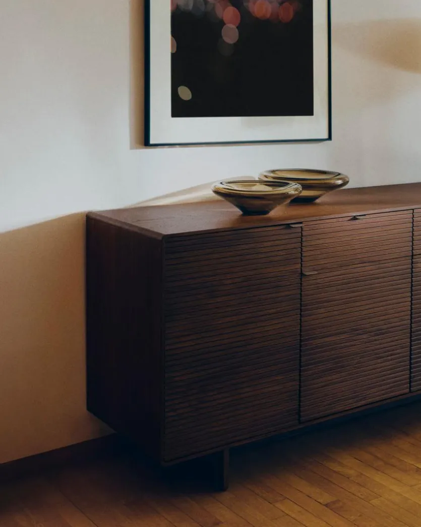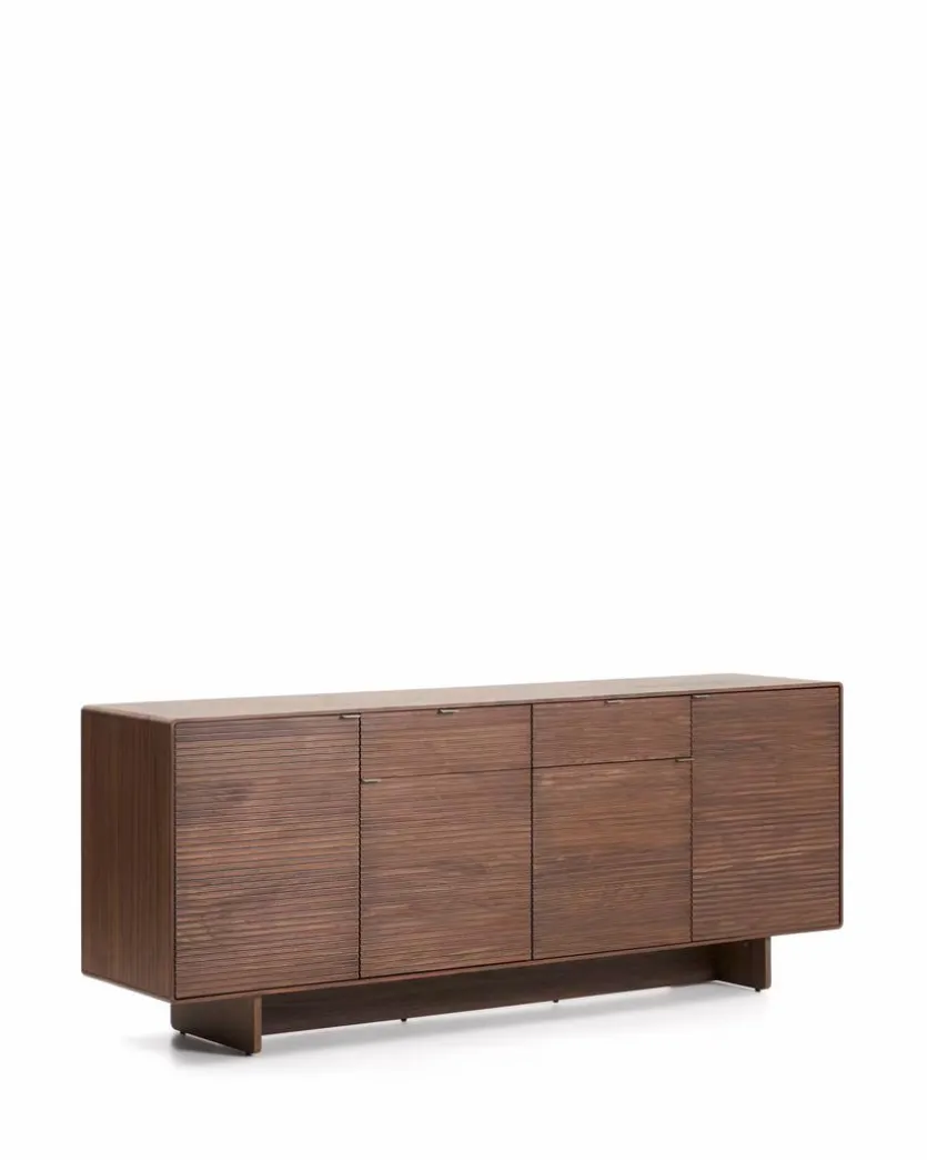 Mit dem Sideboard Norlen der Marke Kave Home ergänzen Sie Ihre heimische Wohneinrichtung um eine ausgesprochen stilvolle Komponente. Dunkles Nussbaumfurnier bestimmt die warme und attraktive Optik dieser Kommode. Auch die Griffe aus gebürstetem Stahl verleihen dem Sideboard Norlen eine Optik, die es zu einem absoluten Hingucker werden lässt.