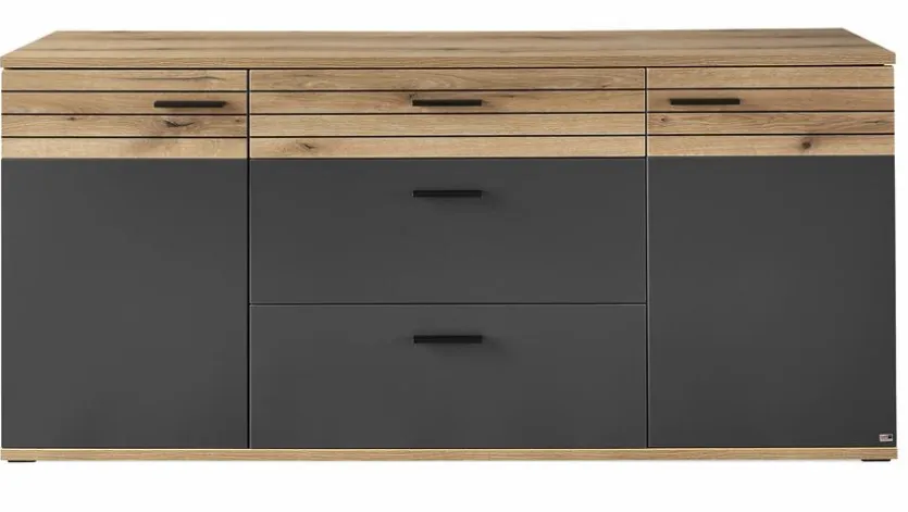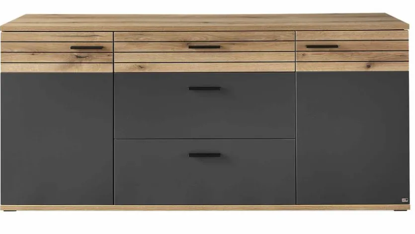 - Korpus aus Holzwerkstoff (Spanplatte) mit kratzfester Melaminharzfolie in Anthrazit, Deckplatte aus Holzwerkstoff (Spanplatte) mit kratzfester Melaminharzfolie in Coast Evoke Eiche