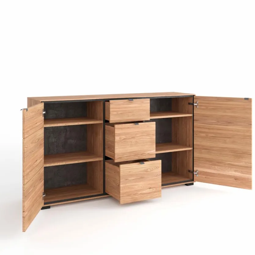 Wenn Sie sich einem modernen Einrichtungsstil verschrieben haben, zeigt sich das Sideboard Rosa von Elfo dank seiner puristischen Formensprache ohne verspielte Elemente hervorragend im ganzen Wohnbereich einsetzbar. Auch in einem großzügigen Gästezimmer oder der Eingangshalle fühlt sich die Kommode sichtlich wohl. Punkten kann das Sideboard Rosa zudem durch die Front aus massivem Hartholz.