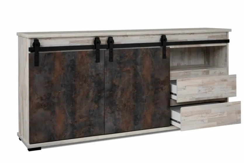 Mit dem Sideboard Sevilla erhalten Sie ein hochwertiges Möbel, das aufgrund seines rustikalen Designs alle Blicke auf sich zieht. Die Kommode bietet ausreichend Platz für diverse Utensilien und lässt sich dank ihrer großzügigen Ablagefläche hervorragend mit hübschen Dingen dekorieren. Zeigen Sie Ihr Gespür für moderne Wohntrends und setzen Sie einen attraktiven Akzent in Ihrem Zuhause mit dem Sideboard Sevilla.