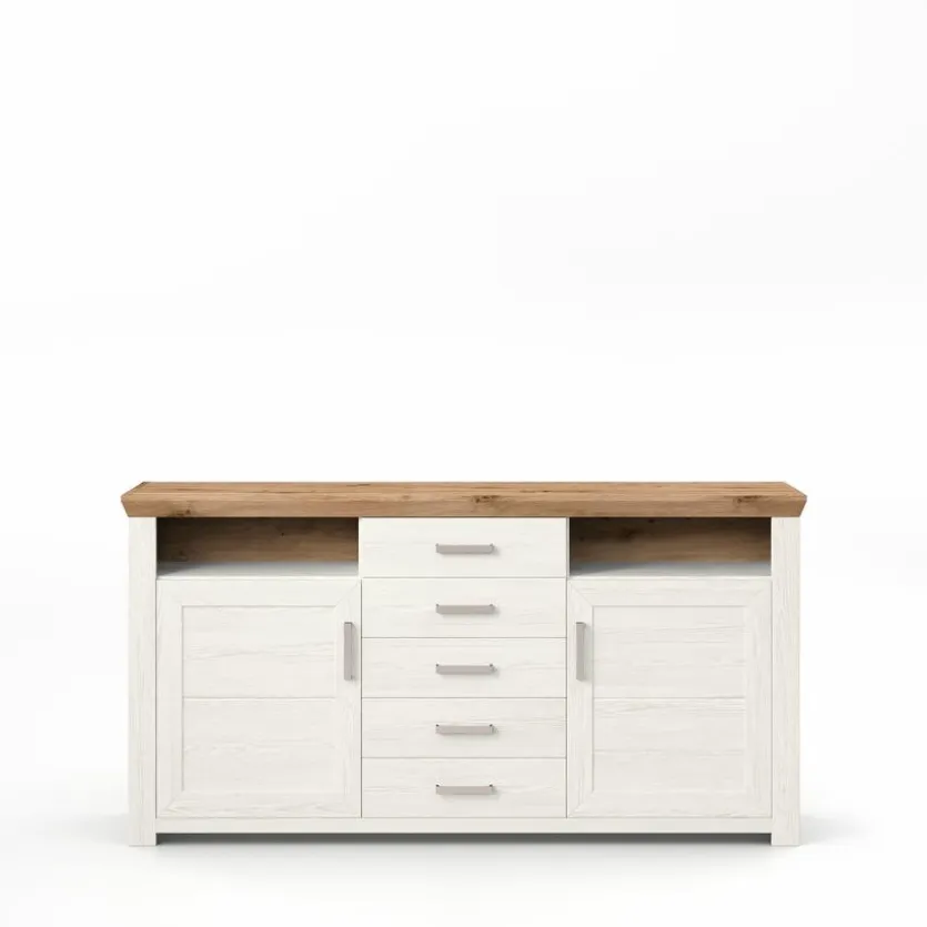 Mit dem Sideboard York von Set one by Musterring erwerben Sie nicht nur viel Stauraum, sondern auch ein schickes Möbelstück. Ausgestattet ist die Kommode mit mehreren Schubkästen, zwei Türen sowie mit zwei offenen Fächern. Front und Korpus sind bei dem Sideboard York von Set one by Musterring aus hochwertigem Dekor gefertigt.