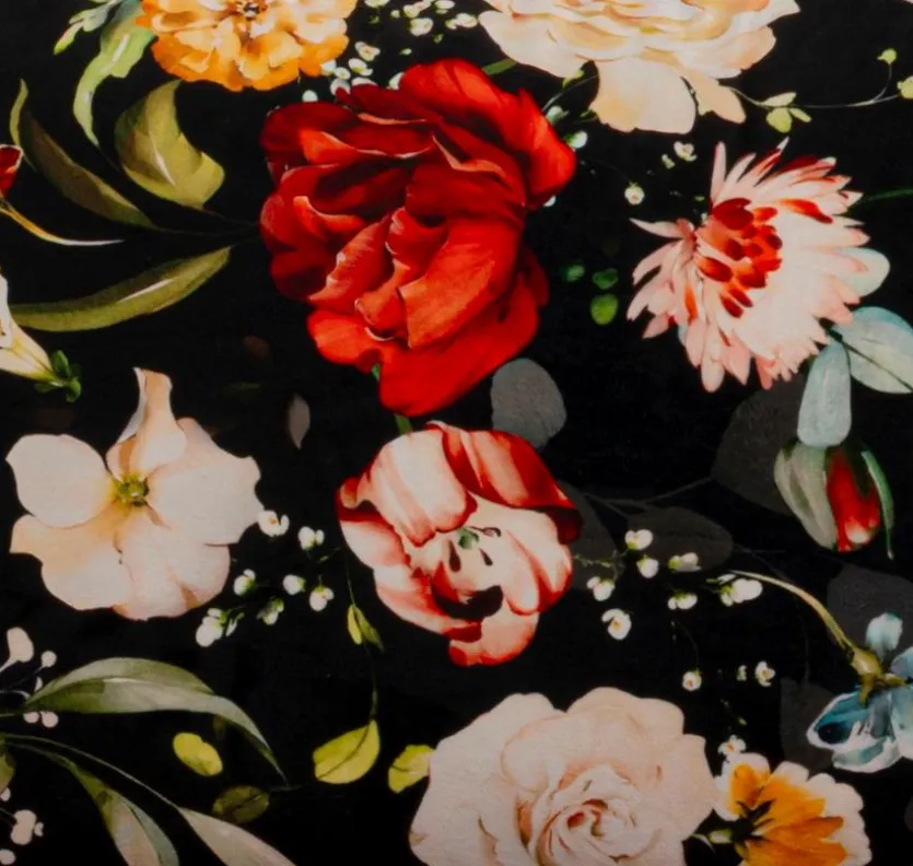 - Bezug aus Stoff in Samtoptik schwarz mit Blumenmuster