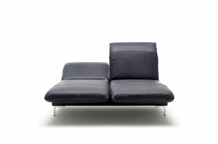 - Bezug aus Leder in schwarzblau (9230), Füße Winkelfuß aus Stahl in glanzchrom