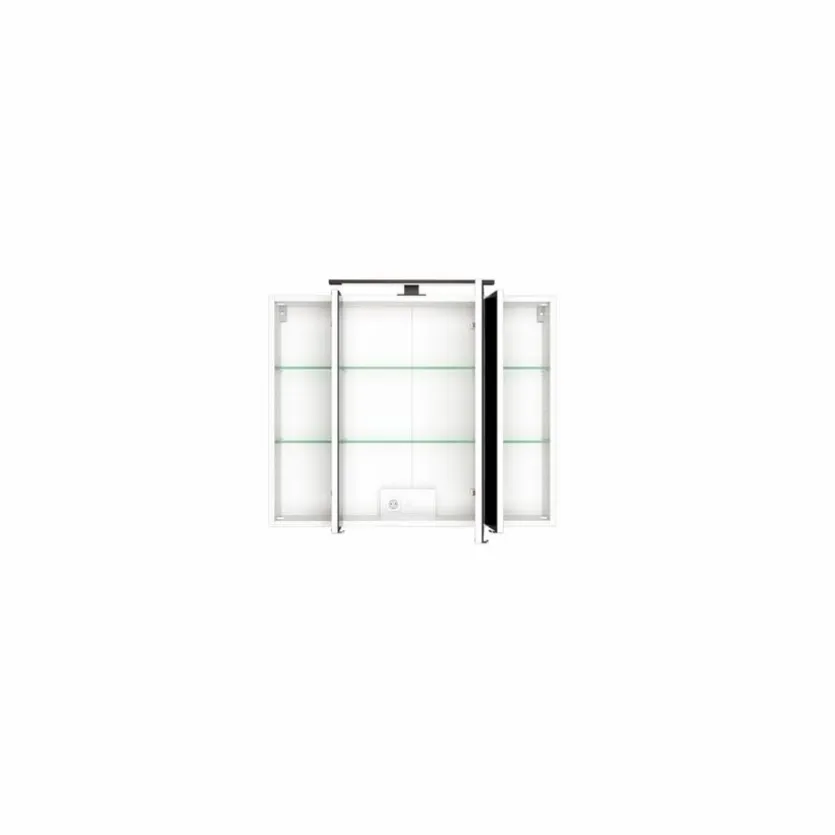 Der Spiegelschrank Chur eignet sich hervorragend zur Unterbringung diverser Gegenstände und gleichzeitig auch als Lichtquelle. Hinter den drei Türen des Schrankes befinden sich sechs Glasböden, auf denen sich zahlreiche Utensilien übersichtlich anordnen lassen. Zusätzlich ist der Spiegelschrank Chur mit einer LED-Aufbauleuchte der Energieeffizienzklasse A++ – A ausgestattet, die bei einer Leistung von 9,6 Watt eine Lichtstärke von 700 Lumen liefert.