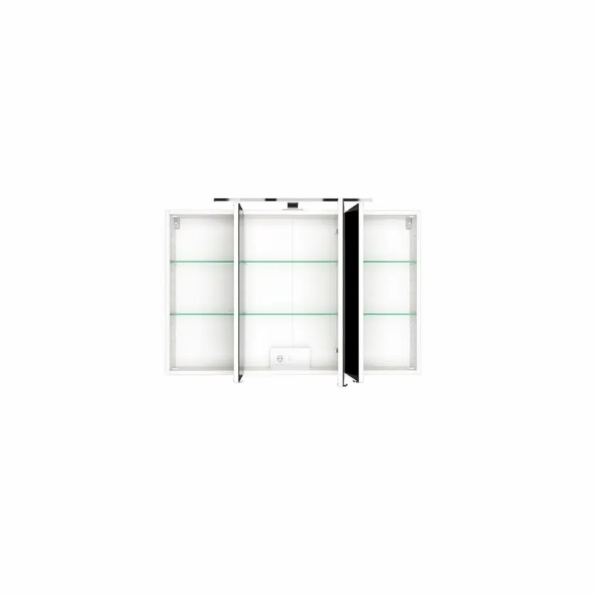 Der Spiegelschrank Florida von Held-Möbel bietet eine große Spiegelfläche mit breiter Ausleuchtung, um Ihre morgendliche Routine zu erleichtern. Egal ob beim Auftragen von Make-up oder bei der Rasur, mithilfe der LED-Leuchten lässt sich ein ausgezeichnetes Ergebnis erzielen. Außerdem nutzt der Spiegelschrank Florida von Held-Möbel gekonnt die Fläche an der Wand und bietet Ihnen reichlich Platz für Ihre Utensilien.