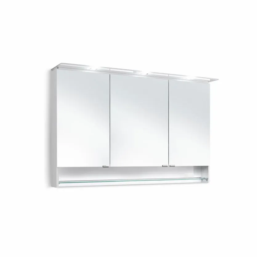 - Front 3 Drehtüren doppelt verspiegelt unten offenes Fach mit Glaseinlegeboden und beleuchteter Rückwand (12V LED, LM LED, 12,5W, 1580LM, 3000-6500K)