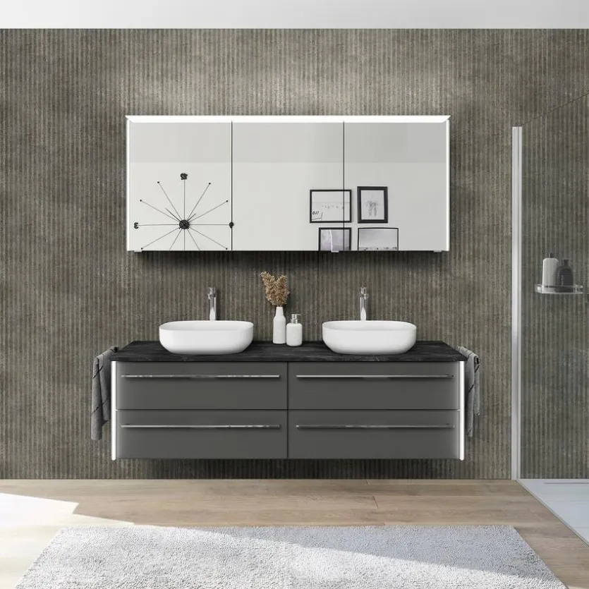 Im Spiegelschrank Leonardo living 116 von Pelipal findet auch bei größeren Familienhaushalten alles seinen Platz. Hinter drei Schranktüren verbirgt sich ausreichend Stauraum für alle Pflege- und Kosmetikprodukte. Freuen Sie sich mit dem Spiegelschrank Leonardo living 116 über perfekte Ordnung in Ihrem Badezimmer.