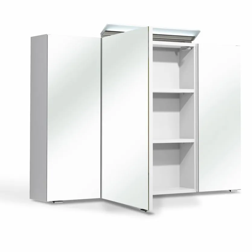 Mit dem Spiegelschrank Quick 341 von Pelipal können Sie kleinere Gegenstände und Utensilien ordentlich aufbewahren. Hinter den drei Türen des Einrichtungsgegenstandes befinden sich insgesamt sechs Einlegeböden. Zur weiteren Ausstattung gehört bei dem Spiegelschrank Quick 341 von Pelipal eine praktische LED-Leuchte sowie eine Steckdose.