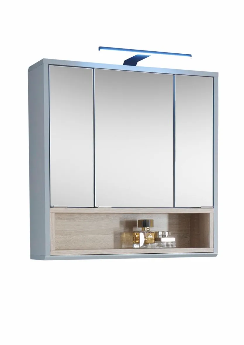 Der Spiegelschrank Tunis eignet sich in optischer und funktionaler Hinsicht besonders gut für moderne Badezimmereinrichtungen. Hinter drei Spiegeltüren und in einem Ablagefach befindet sich genügend Platz für allerlei Badezimmerutensilien. Außerdem sorgt eine umweltfreundliche und energiesparsame LED-Beleuchtung jederzeit für perfekte Lichtverhältnisse rund um den Spiegelschrank Tunis.