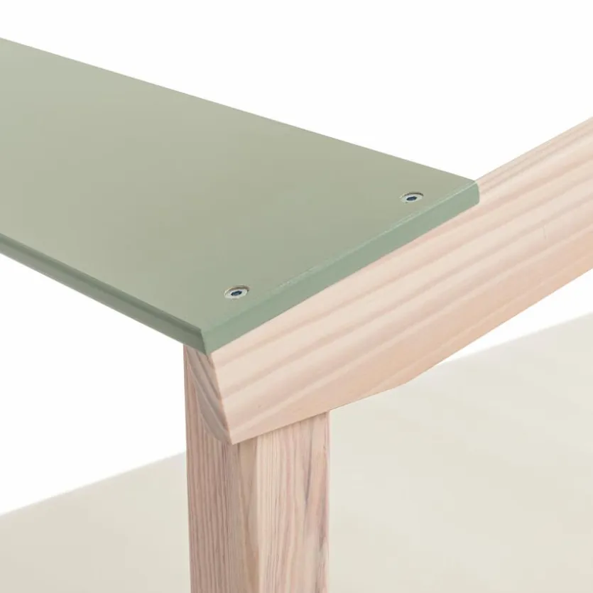 - Seitenteile und Überdachung aus Holzwerkstoff (MDF) in Lichen lackiert, Pfosten, Leiter und Dachgestell aus massiver, klar lackierter Kiefer