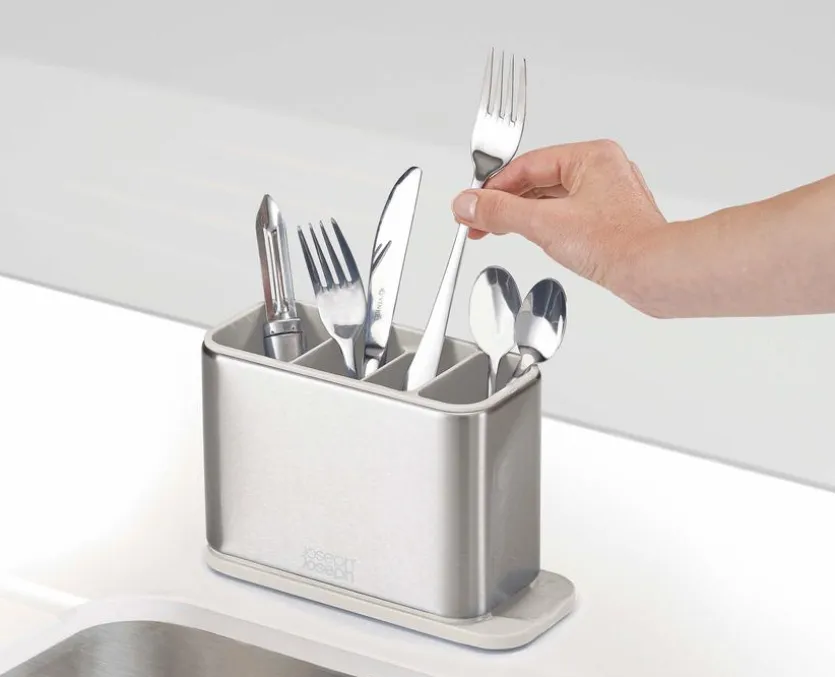Die Spülbecken-Besteckablage Surface von Joseph Joseph ermöglicht Ihnen ein geordnetes und effizientes Trocknen Ihres Bestecks. Mit einem separaten Bereich für Kleinteile und einer speziellen Unterkonstruktion sorgt diese Besteck-Abtropfschale für einen optimalen Abfluss. Die fingerabdrucksichere Edelstahlbeschichtung und die rutschfesten Füße gewährleisten der Spülbecken-Besteckablage Surface Langlebigkeit und Stabilität.