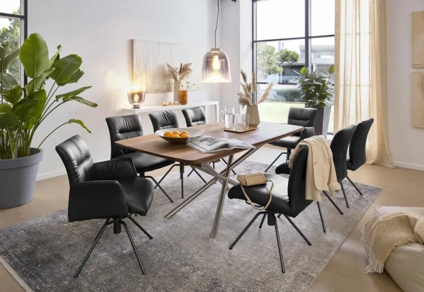 Sorgen Sie mit dem Stuhl Helmond aus dem Hause Musterring für gesteigerten Komfort in Fluren, Esszimmern und in vielen weiteren Räumen. Dies gelingt dank der weich gepolsterten Sitzschale des Möbelstücks spielend leicht. Optisch überzeugt der Stuhl Helmond darüber hinaus durch eine dunkle Gestaltung und seine gesteppte Rückenlehne.