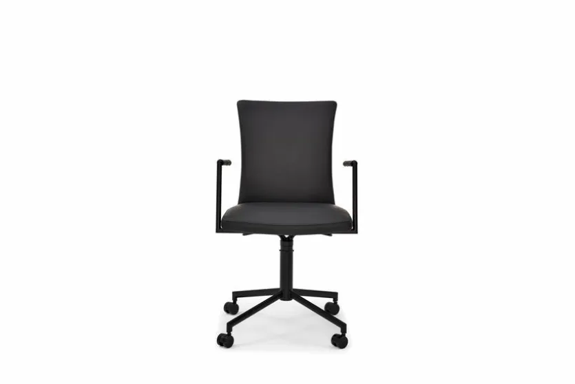 Tragen Sie mit dem Stuhl Helmond aus dem Sortiment von Musterring zur Gemütlichkeit im Zimmer bei. Die Sitzgelegenheit bietet Ihnen unter anderem eine praktische Dreh- und Rückholfunktion. Außerdem können Sie den Stuhl Helmond dank der angebrachten Rollen ganz leicht im Wohnbereich bewegen.