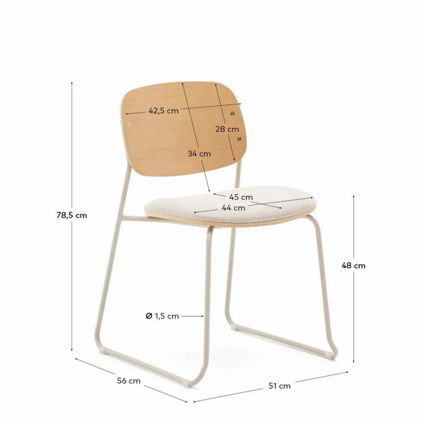 Der Stuhl Meli von Kave Home präsentiert sich dem Freund zeitgemäßer Einrichtung mit einer filigranen und modernen Aufmachung. Ganz egal, ob Sie in ihn in der Küche, im Essbereich oder im Hobbyraum nutzen, er lässt sich in verschiedene Umgebungen stilvollendet integrieren. Dank der gepolsterten Sitzfläche bietet Ihnen der Stuhl Meli einen exzellenten Komfort.