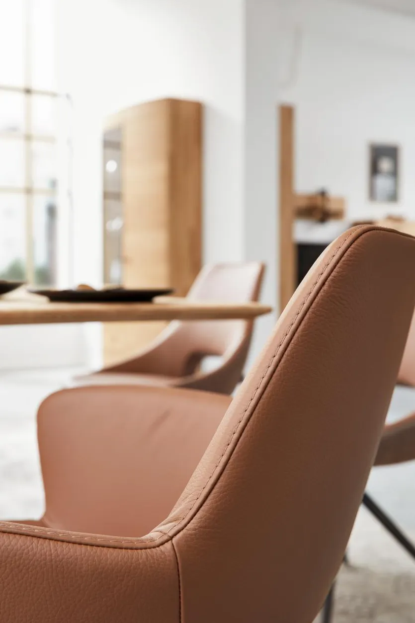 Der Stuhl Navarra von Musterring vereint futuristisches Design und praktische Funktionalität. Seine charakteristische Optik mit einer markanten Öffnung am Rücken und dem Textilbezug machen diesen Stuhl zu einem außergewöhnlichen Element in Ihrem Essbereich. Erfahren Sie ein Maximum an Komfort und eine einzigartige Optik. Bringen Sie mit dem Stuhl Navarra das perfekte Möbelstück in Ihr Zuhause und erleben Sie das Vergnügen eines modernen Ambientes!
