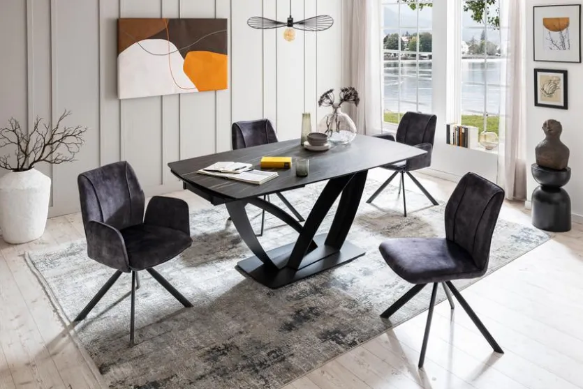 Ein geschmackvoll gestaltetes Fleckenmuster verleiht dem erstklassig gefertigten Stuhl Torrance ein überaus stylisches Erscheinungsbild. Die leicht gebogene Rückenlehne lässt im Zusammenspiel mit den abgespreizten Beinen zudem eine dynamische, attraktive Optik entstehen. Auch in puncto Komfort kann der angenehm weich gepolsterte Stuhl Torrance auf ganzer Linie überzeugen.