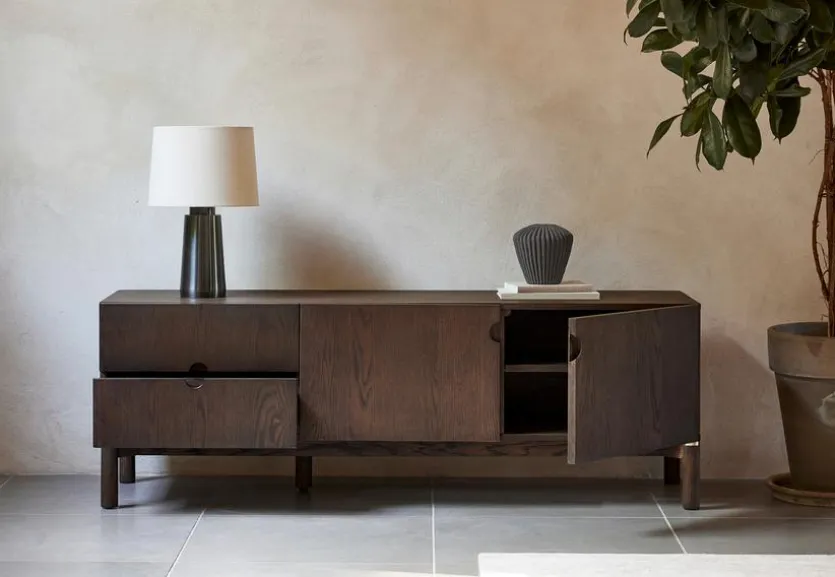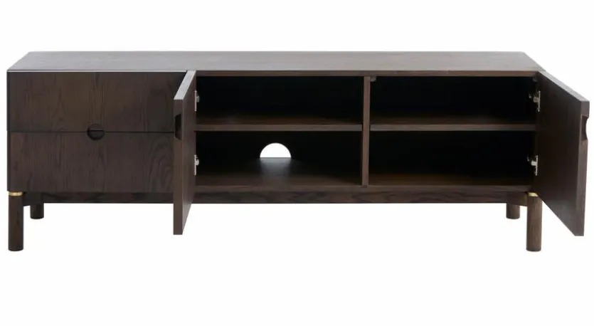 Mit dem TV-Lowboard Arun der Marke DAHEIM verleihen Sie Ihren Räumen ein ebenso trendbewusstes wie wertiges Flair, denn die edel wirkende dunkle Holzoptik strahlt eine sanfte Eleganz aus. Im TV-Unterschrank findet Nützliches und Liebgewonnenes seinen festen Platz, während die Deckplatte ausreichend Fläche für Ihr Heimkino bietet. Das ansprechende Design des TV-Lowboards Arun fügt sich außerdem mühelos in unterschiedliche Einrichtungsstile ein.