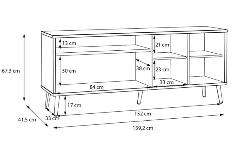 Farbe: Weiß / EicheMaterial: DekorGröße: Breite: 159,20 cm, Höhe: 67,30 cm, Tiefe: 41,50 cm