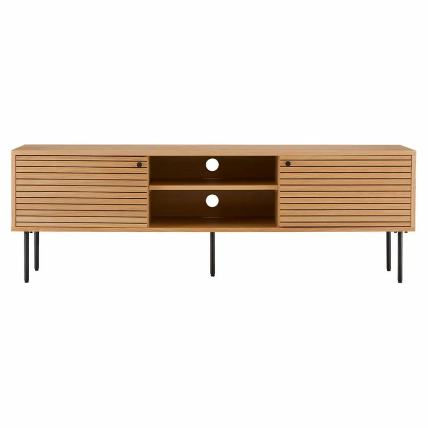 Die attraktive Streifen- und Holzoptik macht das TV-Lowboard Kyoto zu einer optischen Bereicherung für Ihr Zuhause. Darüber hinaus bietet Ihnen dieser TV-Unterschrank die Möglichkeit, etwa Medienartikel sinnvoll sortiert unterzubringen. Auch in qualitativer Hinsicht bleiben bei dem erstklassig verarbeiteten TV-Lowboard Kyoto mit Sicherheit keine Wünsche offen.
