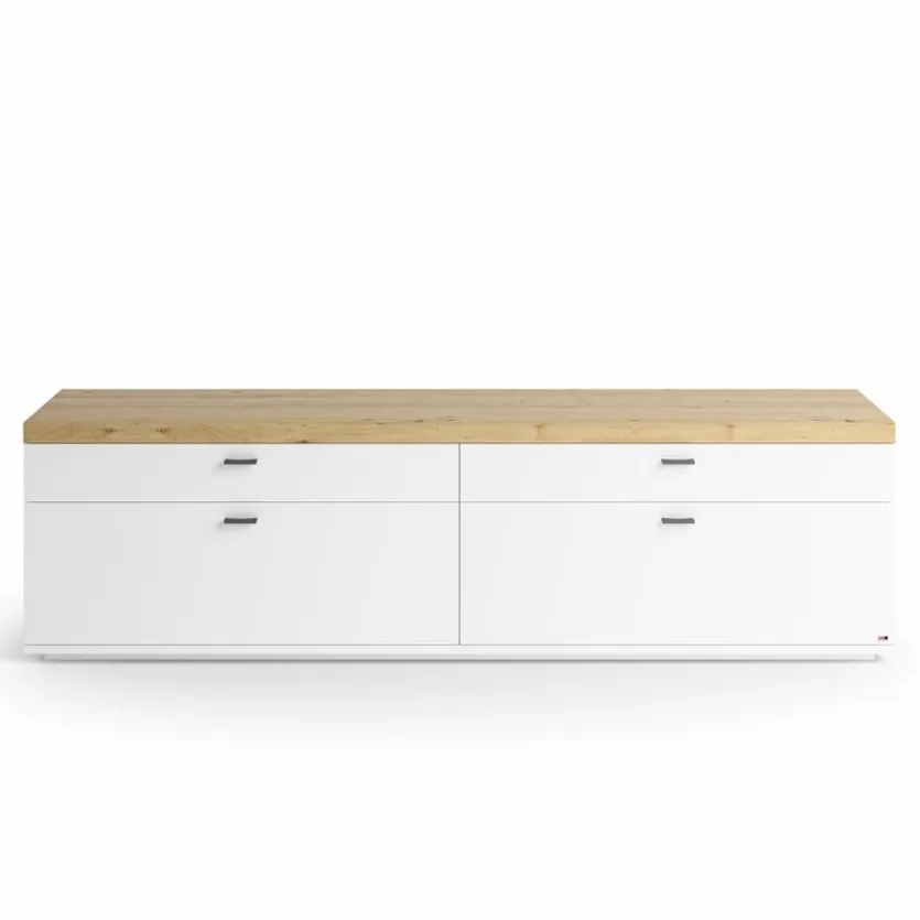 Das set one by Musterring TV-Lowboard Lancaster wirkt herrlich zeitgemäß und puristisch. Ein Oberteil in wohnlicher Holzoptik verleiht dem TV-Unterschrank eine schöne Wellbeing-Note. Kombinieren Sie das TV-Lowboard Lancaster zum Beispiel mit einem Highboard aus diesem Programm beziehungsweise mit weiterem Mobiliar im modernen, sachlich erscheinenden Stil!