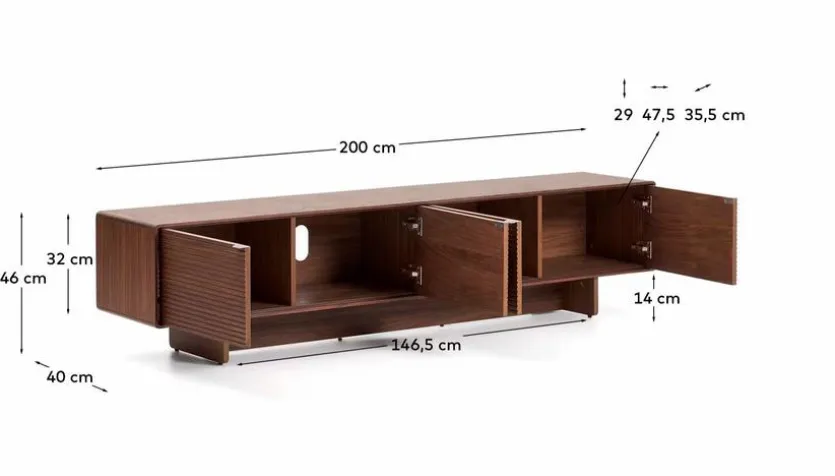 Mit einer Kombination aus klassischem Design und tropischer Leichtigkeit begeistert das TV-Lowboard Norlen von Kave Home. Der edle TV-Unterschrank harmoniert ideal mit dem modernen, behaglichen Einrichtungsstil. Hinter seinen vier Türen bietet das TV-Lowboard Norlen viel Stauraum für Geschirr, Tischdecken, Spiele und sonstige Dinge, die Ihnen wichtig sind.
