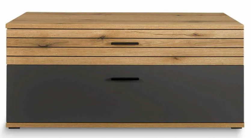 - Korpus aus Holzwerkstoff (Spanplatte) mit kratzfester Melaminharzfolie in Anthrazit, Deckplatte aus Holzwerkstoff (Spanplatte) mit kratzfester Melaminharzfolie in Coast Evoke Eiche