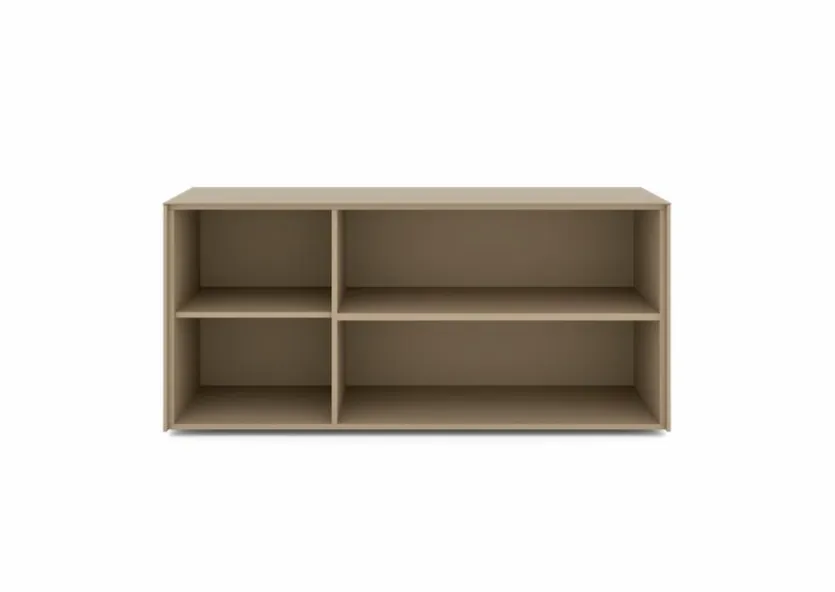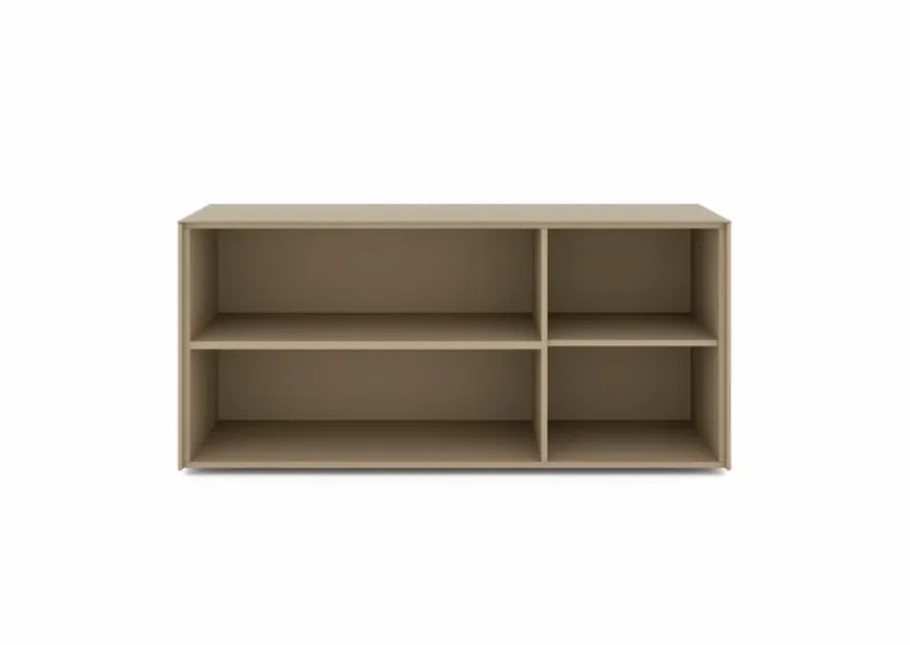 - Aus Holzwerkstoff (Spanplatte) mit kratzfester Melaminharzfolie in taupe