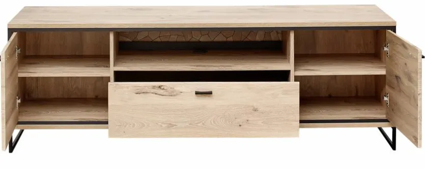 Das TV-Lowboard Ruben aus dem Hause Wohnconcept ist weit mehr als nur ein praktisches Möbelstück. Mit der Naturholzoptik und dem markanten Metallgestell erhält der TV-Unterschrank ein attraktives Äußeres. Darüber hinaus bietet das TV-Lowboard Ruben im Inneren viel Stauraum für die gut geordnete Aufbewahrung von Fernbedienungen, Zeitungen und mehr.