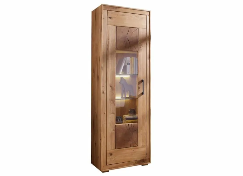 Vor allem Freunde der hochwertigen, rustikalen Einrichtung verlieben sich in die Vitrine Fort Worth der Marke G+K auf den ersten Blick. Die wunderschöne Echtholz-Glasvitrine präsentiert sich mit einer natürlichen Maserung und ist ein edles Unikat. In der Vitrine Fort Worth können zum Beispiel Bücher, Vasen oder Dekofiguren stilvollendet untergebracht werden.