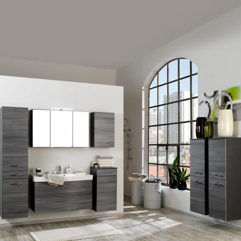 Stilvoll in der Optik, hochwertig in den Materialien – das zeichnet den Waschbeckenunterschrank Florida aus. Zwei Metall-Vollauszüge mit Softclose-Funktion bieten Platz, um diverse Hygienartikel und Accessoires zu verstauen. Das inkludierte Mineralgussbecken hebt sich farblich vom Waschbeckenunterschrank Florida ab und bildet einen schönen Kontrast.