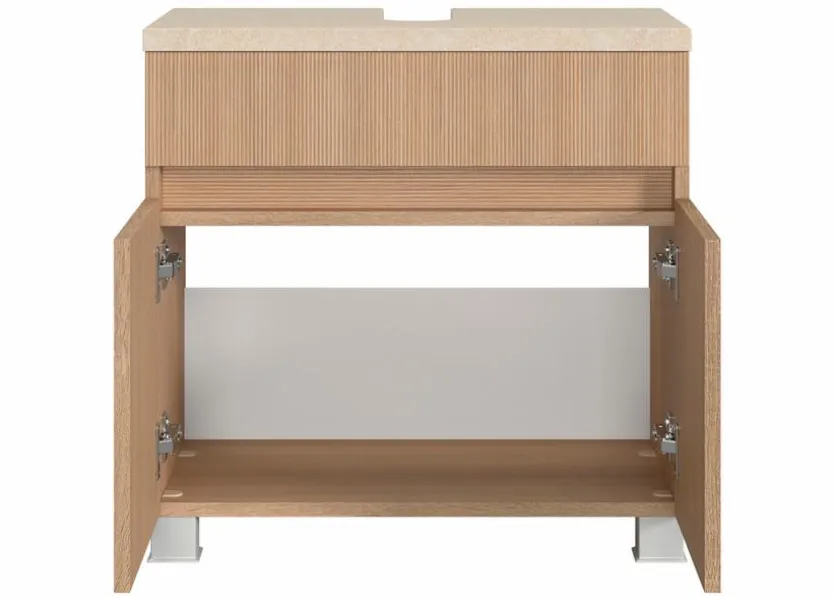 - Mit 2 Türen und darüber eine feste Blende, inkl. gedämpfte Scharniere