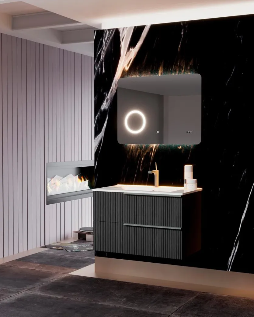 - Front aus Holzwerkstoff (MDF) mit hochwertiger Dekorfolie in Nero Africa gerippt
