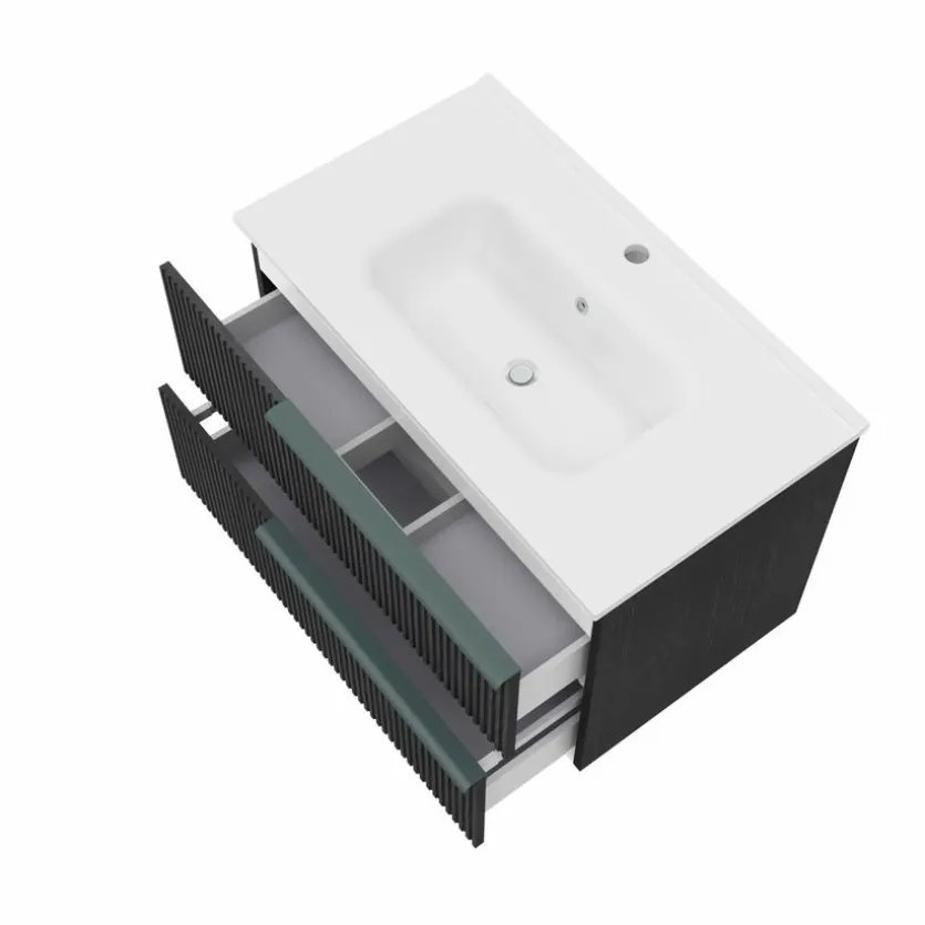 - Waschbeckenunterschrank hängend mit 2 Schubladen inkl. Softclose und Griffe in der Farbe Anthrazit 50 cm lang