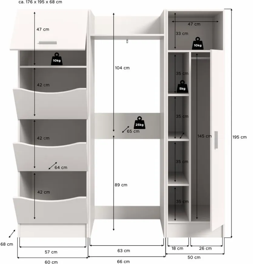 Farbe: WeißMaterial: DekorGröße: Breite: 182,00 cm, Höhe: 195,00 cm, Tiefe: 68,00 cm