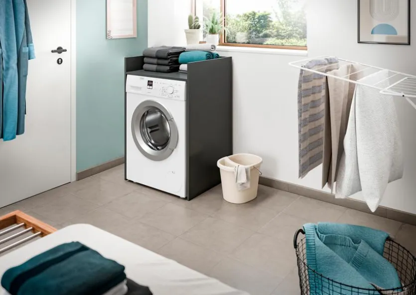 Der Waschmaschinenumbauschrank Lucca bietet eine elegante Lösung für mehr Ordnung in Ihrem Zuhause. Mit seinem schlichten Design fügt sich dieser funktionale Geräteschrank harmonisch in jede Umgebung ein und schafft zusätzlichen Stauraum. Der Waschmaschinenumbauschrank Lucca bietet zudem eine praktische Ablagefläche für Waschmittel und andere Utensilien des täglichen Bedarfs.