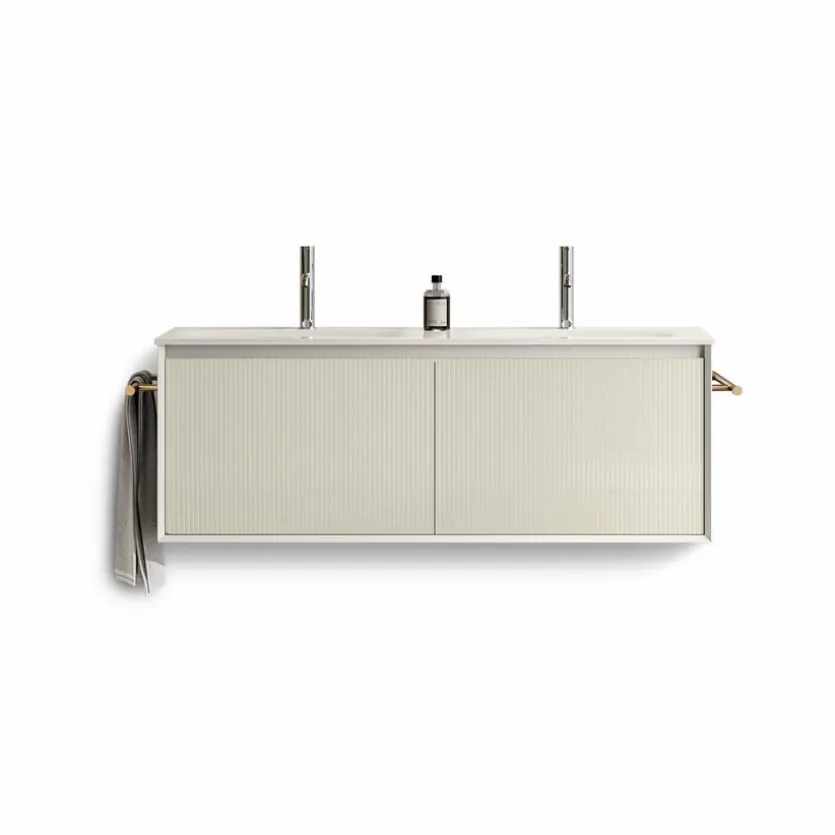 - Mit Doppelwaschtisch Mineral Geacril in MGC-O233 Seta, ohne Überlauf, mit Permanentablauf, (nur mit nicht verschließbaren Ablaufventilen kombinierbar)
