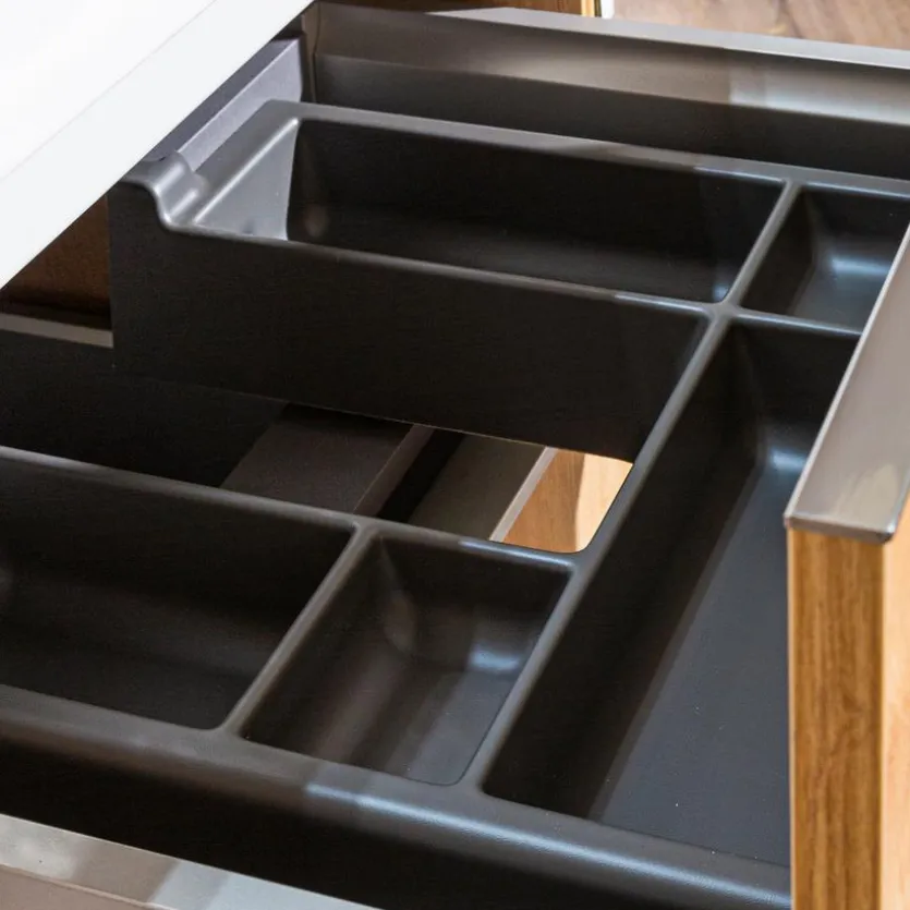 - Front aus Holzwerkstoff (Spanplatte) mit kratzfester Melaminharzfolie in Chalet Eiche