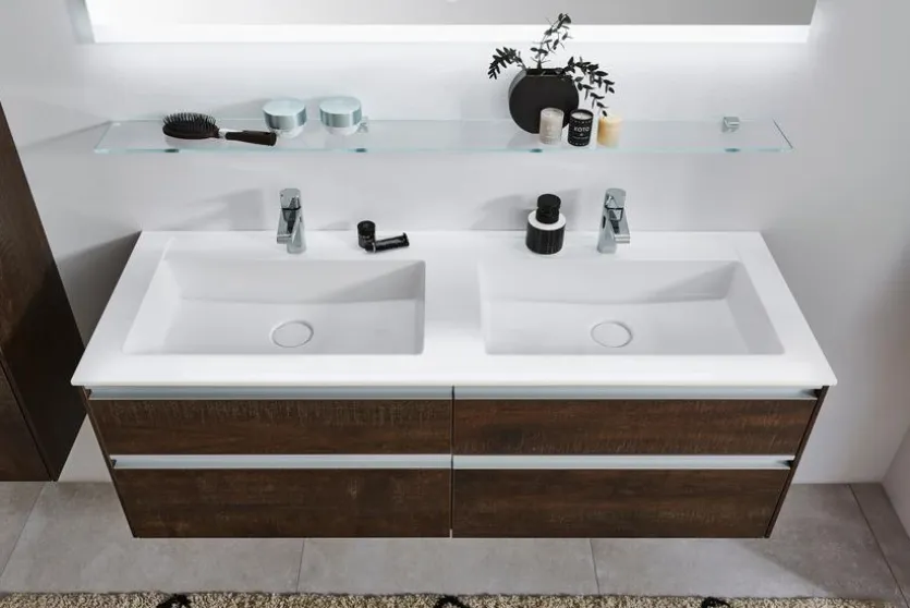 Mit ihrer geradlinigen, minimalistischen Optik passt die Waschtischkombination New Xpression von Puris in jedes zeitgemäß eingerichtete Bad. Durch die getrennten Waschplätze können Sie zu zweit die gemeinsame Zeit im Badezimmer in aller Ruhe genießen. Die Waschtischkombination New Xpression lässt zwei Personen beim Rasieren, Zähneputzen und Co. genügend Freiraum.