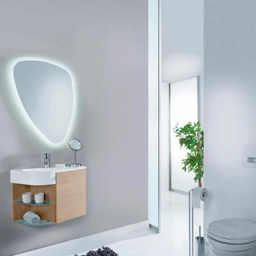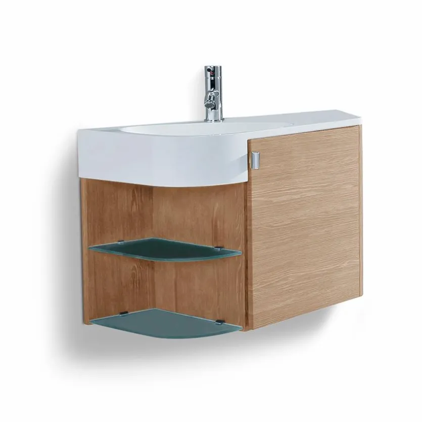 - – Waschtischunterschrank (wandhängend) mit 1 Türe und 1 offenem Fach mit 2 Glasablagen, Griff in Chrom Glanz