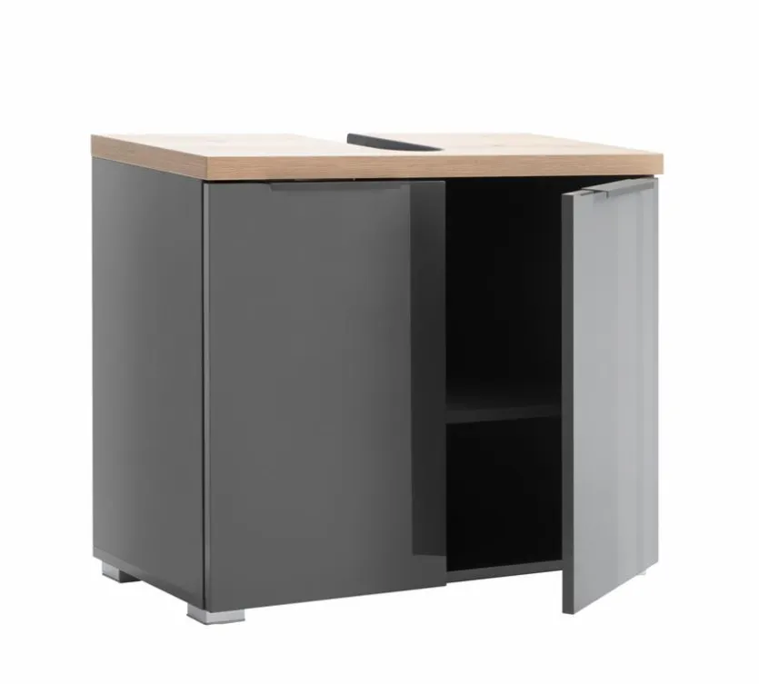 Der Waschtischunterschrank Mundi von Composad bietet Ihnen praktischen Stauraum und ist die ideale Ergänzung für Ihr Badezimmer. Mit seinen zwei Türen und dem Siphonausschnitt ermöglicht er eine optimale Nutzung des vorhandenen Platzes. Der Badezimmerschrank bietet nicht nur ausreichend Stauraum für Ihre Utensilien, sondern ist auch äußerst praktisch und funktional. Mit dem Waschtischunterschrank Mundi erhalten Sie eine clevere Aufbewahrungslösung für Ihr Badezimmer.