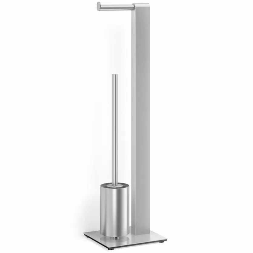 Eine praktische Lösung zur Aufbewahrung von WC-Bürste sowie Toilettenpapier bietet die WC-Garnitur Atore aus dem Hause Zack. Während die Bürste stilvoll in dem Behälter ihren Platz findet, fungiert die obere Stange als Toilettenpapierhalter. Hergestellt ist die WC-Garnitur Atore von Zack aus gebürstetem Edelstahl.