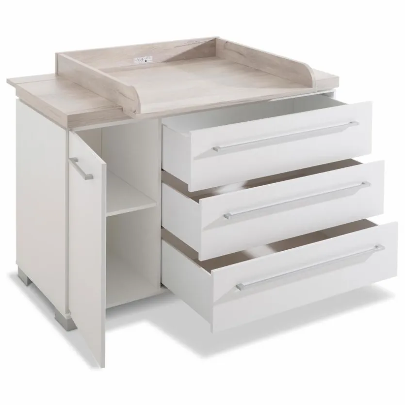 - Aus Spanplatte mit kratzfester Melaminharzfolie in Kreideweiß, Absetzung in Eiche Nautik