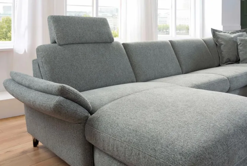- inkl. Schubkasten in der Ottomane, Querschläfer echt bezogen im 2-Sitzer, Bettkasten im Longchair und Armteilverstellung beim Longchair