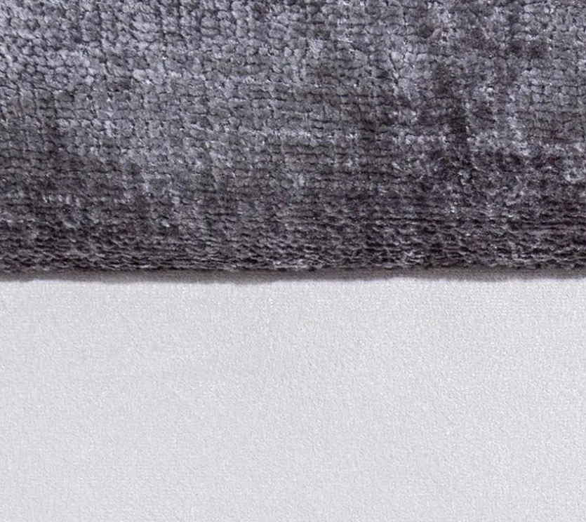 - Sitzbezug aus Boucléstoff in Anthrazit, Korpusbezug aus Stoff in Samtoptik Grau, Füße aus Kunststoff in Schwarz,