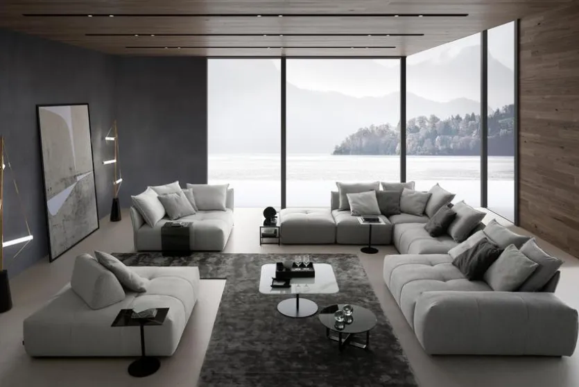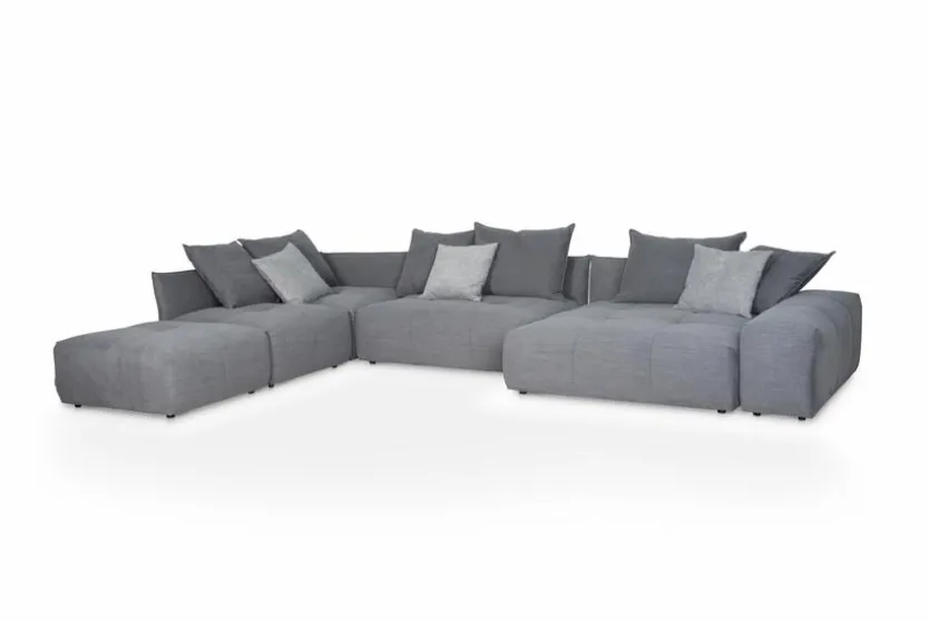- Wohnlandschaft (DW-D064517B) besteht aus Anstellhocker, 1-Sitzer ohne Armlehne, Ecke, 1,5-Sitzer ohne Armlehne, Longchair mit Armlehne rechts